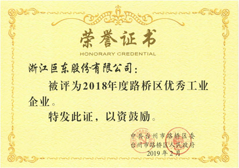 2018年度路橋區(qū)優(yōu)秀工業(yè)企業(yè)