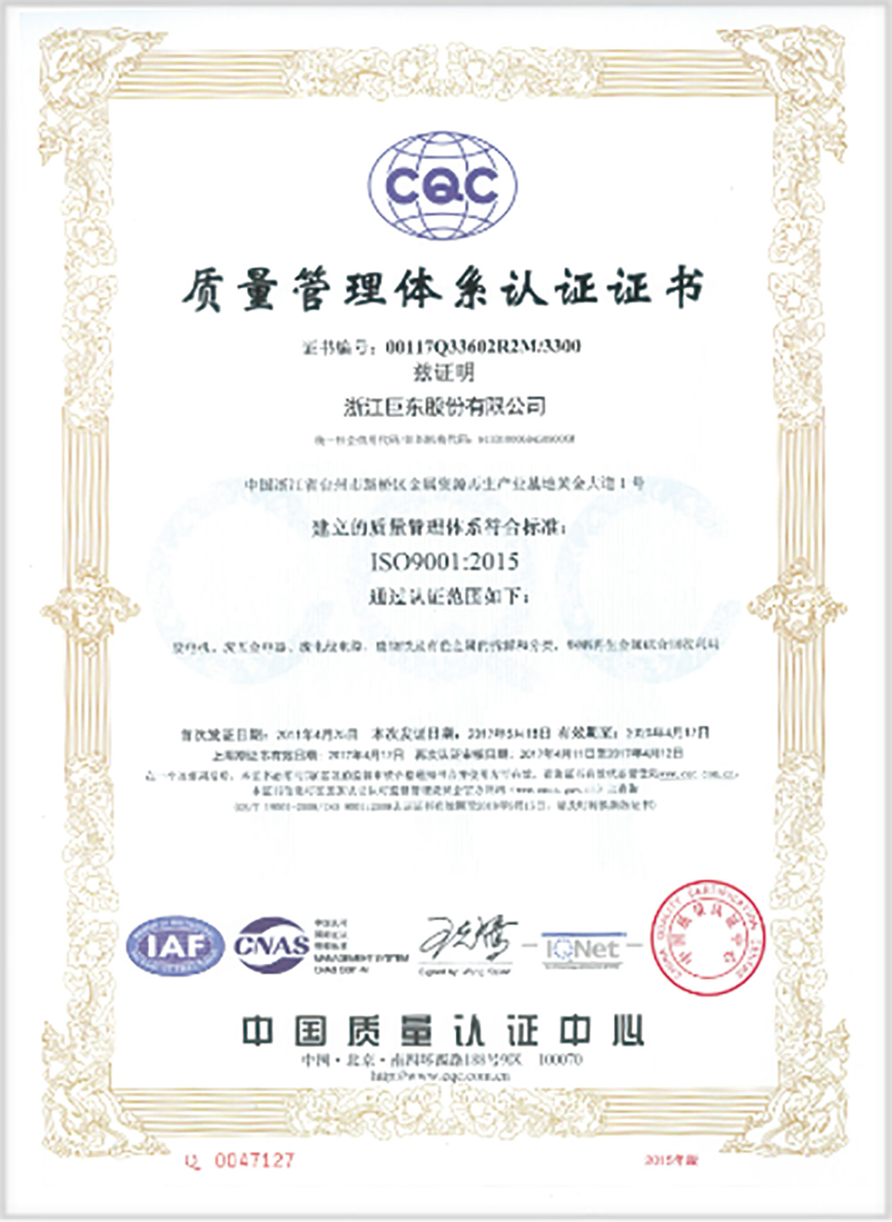 2017年5月取得ISO9001認(rèn)證